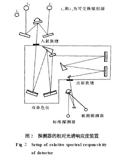 相對(duì)光譜響應(yīng)度測量用的傳遞標(biāo)準(zhǔn)是非選擇性的腔形熱電堆, 為了保持它的非選擇性, 熱電堆必須在窗口外操作。但由于沒有窗口, 探測器隨外界空氣波動(dòng)很靈敏, 它將產(chǎn)生一個(gè)毫瓦級(jí)的等效噪聲功率。為了準(zhǔn)確測量, 必須提供幾十毫瓦的輻射功率, 該輻射功率對(duì)雙單色儀來說是不能接受的。如果使用單個(gè)單色儀, 則將會(huì)產(chǎn)生大量的雜散輻射, 但不會(huì)影響測量準(zhǔn)確度, 因?yàn)楸恍?zhǔn)的熱電堆與腔探測器一樣無選擇性。
