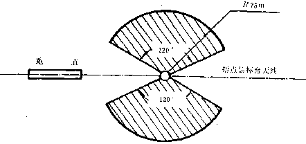 4.3.3 指點(diǎn)信標(biāo)臺向空中發(fā)射垂直扇型波束。其覆蓋區(qū)為,高度50—100m時(shí),縱向?qū)挾葹?00—400m;高度200—400m時(shí),縱向?qū)挾葹?00—800m(圖 5)。