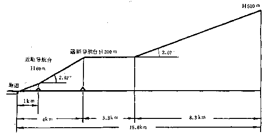 B1  運(yùn)輸機(jī)按遠(yuǎn)、近距導(dǎo)航臺進(jìn)場著陸時(shí)的下滑線(下圖)。